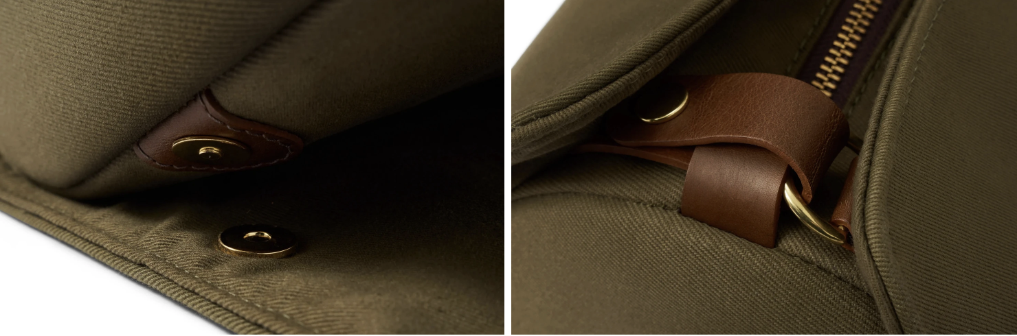 解決這個問題的方法是在行李包底部增加兩個磁鐵固定點,也在西裝套兩側增加皮扣,除了解決公差問題之外,手提包還可以完美地放置在西裝套中央,也能夠準確地對齊手提包中央拉鍊的兩側。