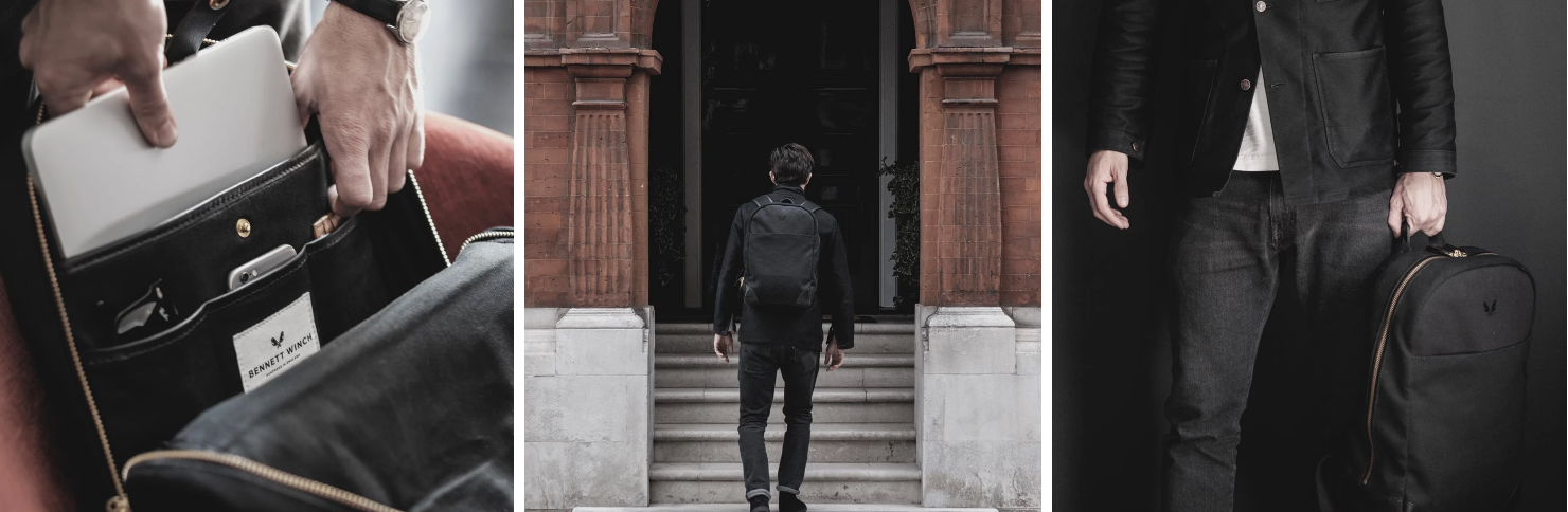 這款背包包由英國手工製作,輕盈的防水帆布與皮革飾邊結合,展現出精緻低調的風格。