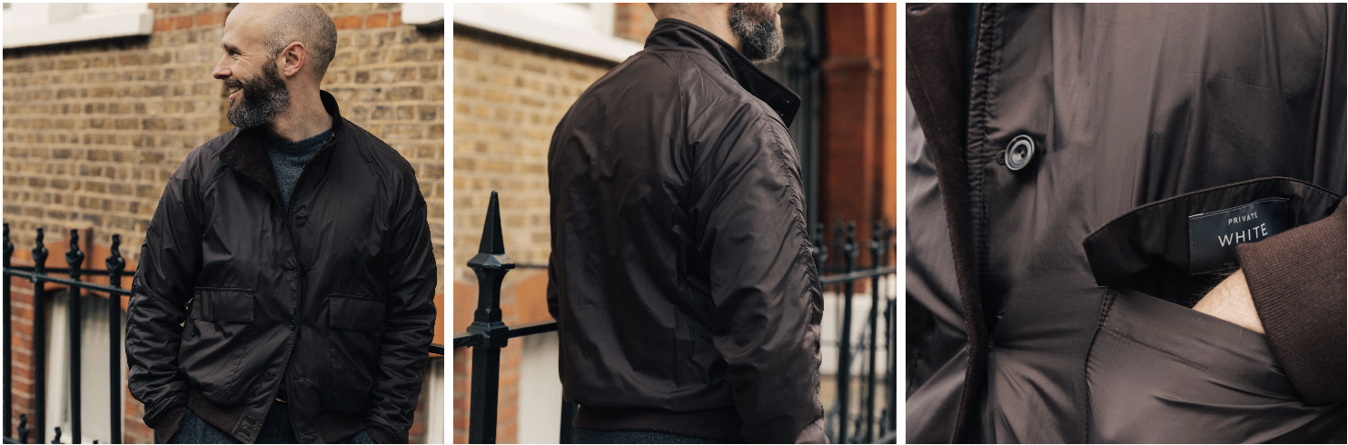 Private White 最受歡迎的PS系列推出新款,『Reversible Suede Bomber』(可雙面穿麂皮飛行夾克),Simon想要在麂皮飛行夾克上增加更高度的實用性與設計比例的變更,從原本與義大利Valstar合作,轉而與英國PW進行新一款麂皮飛行夾克開發。
