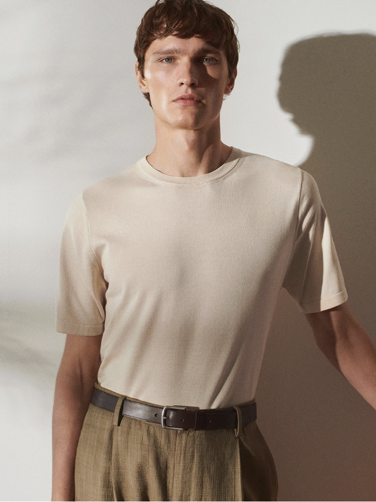 從布料選擇到版型比例,Sunspel 的基本 T-shirt 講究到每一針每一線。T-shirt 的極致演繹,不再只是「內搭」,而是造型主角。