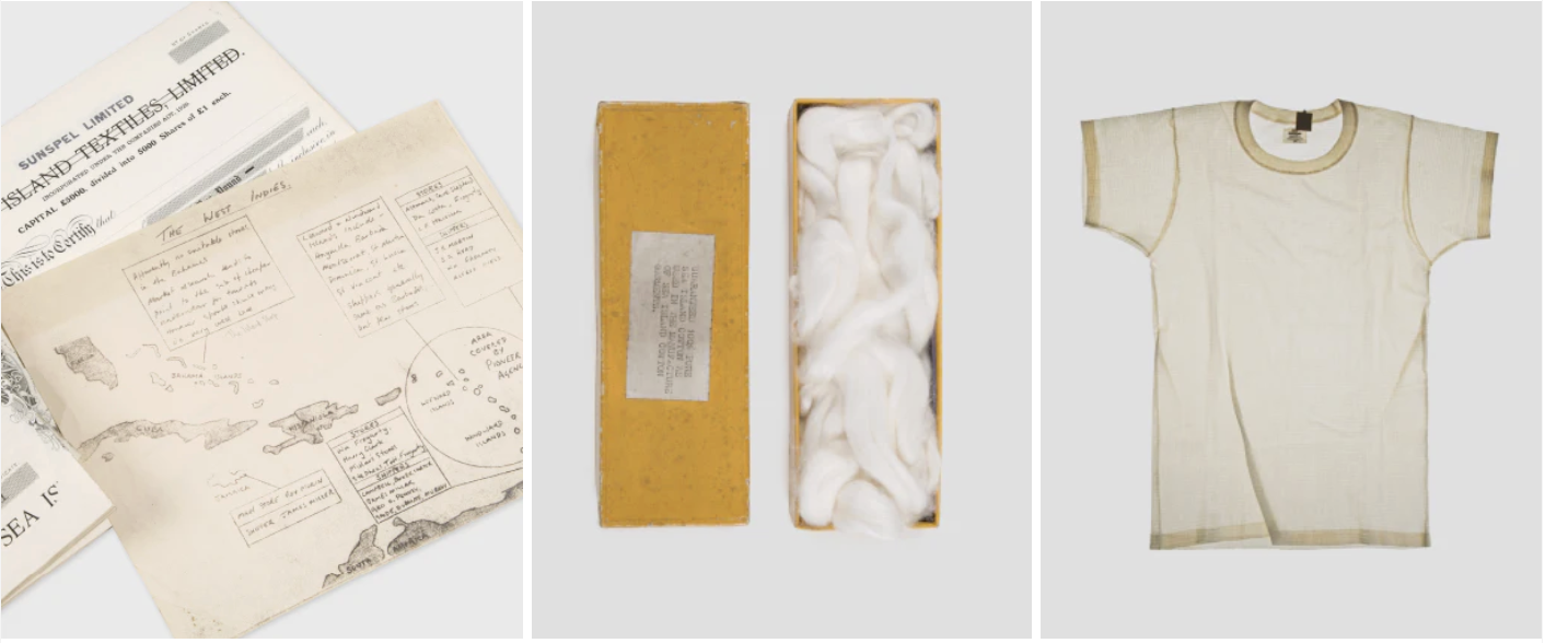 Sunspel 早在19世紀便開始使用海島棉製作衣服,也是『 世界上第一個用海島棉製作 T 恤的品牌 』,將傳統上被視為工作服的 T 恤轉變為奢華服裝,如今 Sunspel 的檔案庫中,也仍然收藏著古老的加勒比海地圖,和當時第一件的海島棉T 恤。