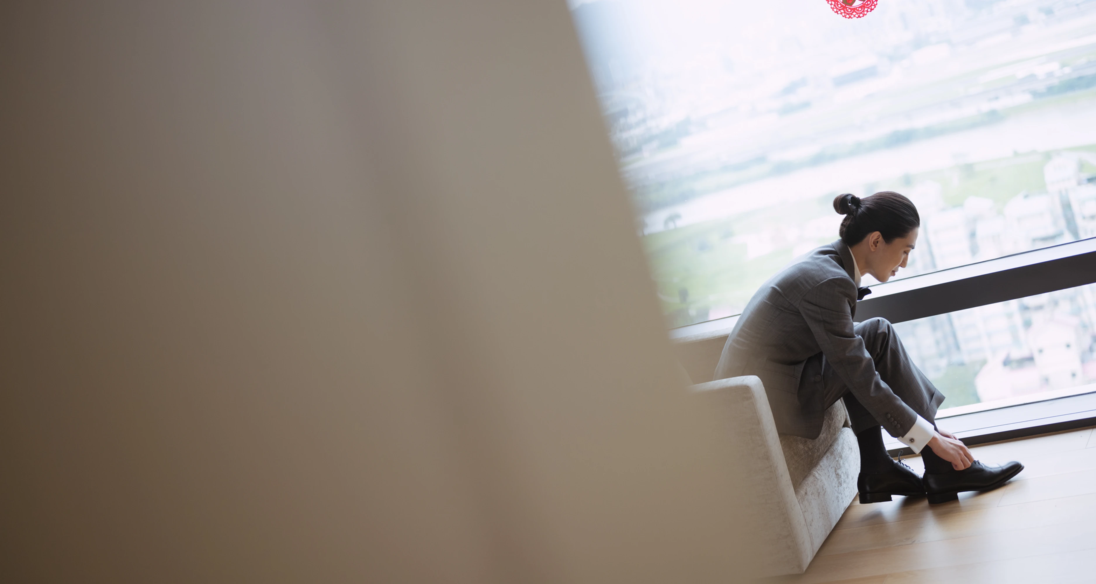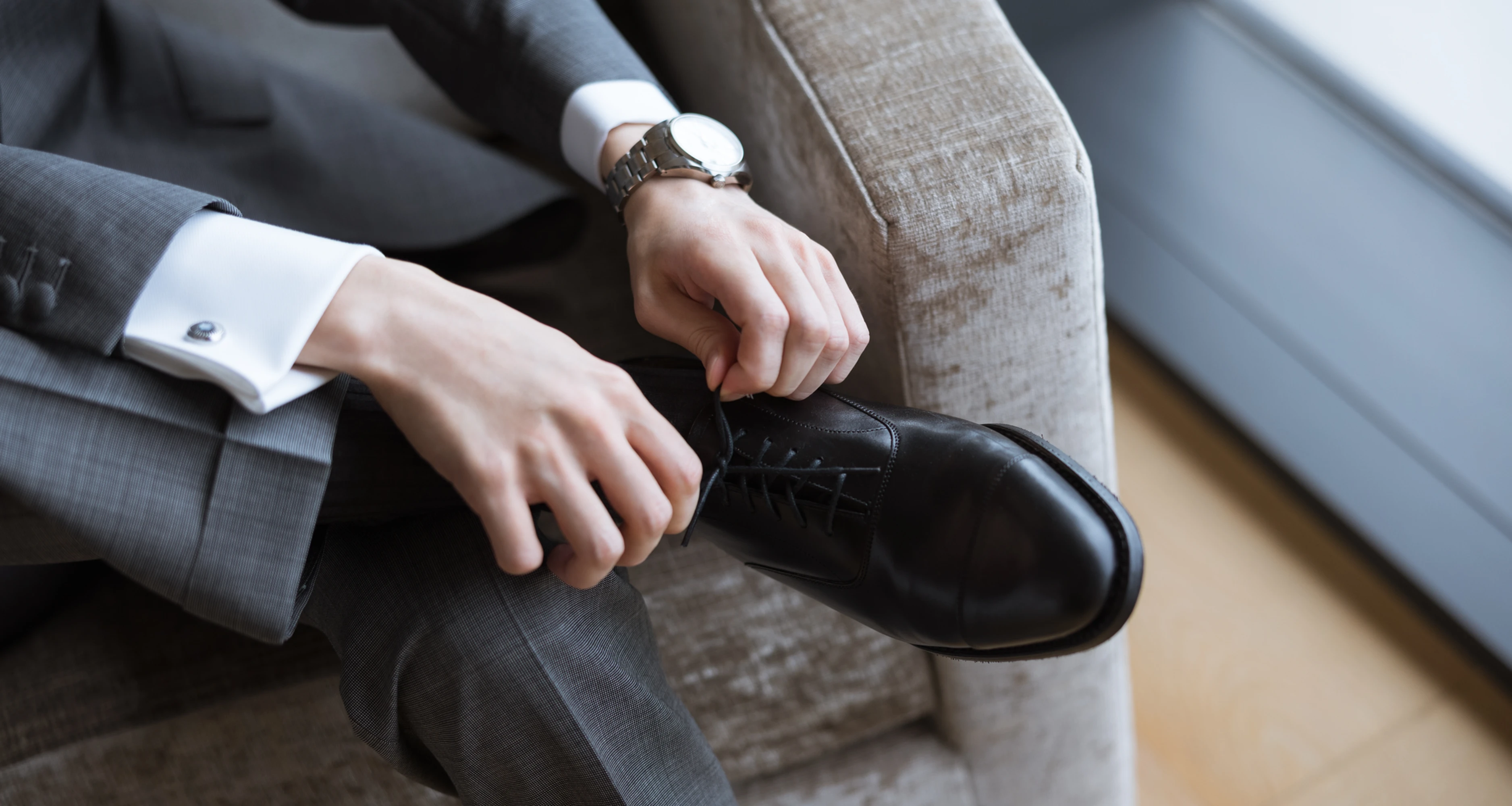 當一雙手工皮鞋完全地呈現在褲管之外,鞋子的精緻度會讓整體造型提升。