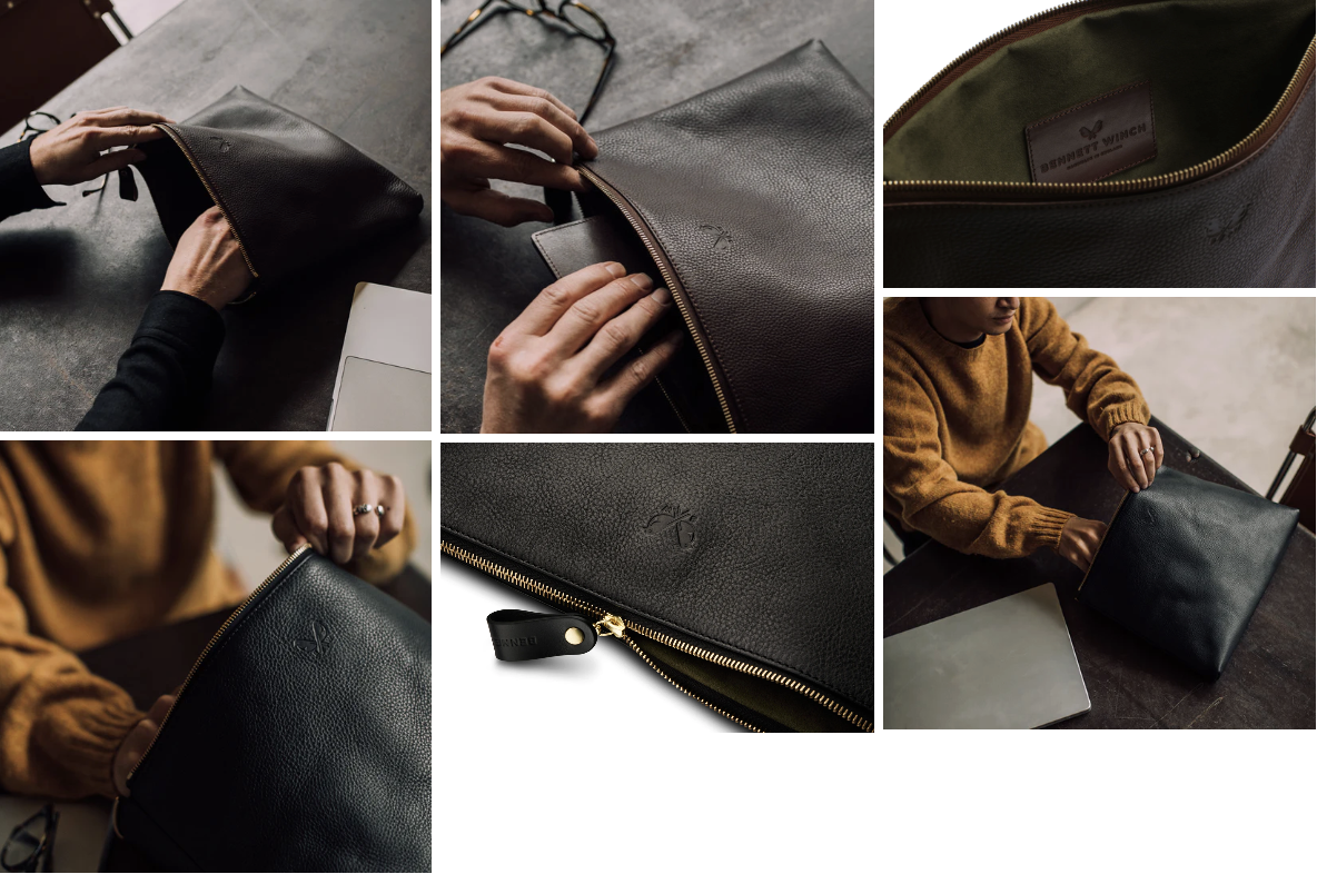 這款皮革旅行文件袋在倫敦手工製作,外層使用義大利植鞣皮革,質感極佳且經久耐用,內裡採用超跑專用的Alcantara麂皮,配有一個拉鍊口袋和內部夾層可以放入您的筆記型電腦或iPad,而瑞士RIRI頂級拉鏈可確保您物品的安全。