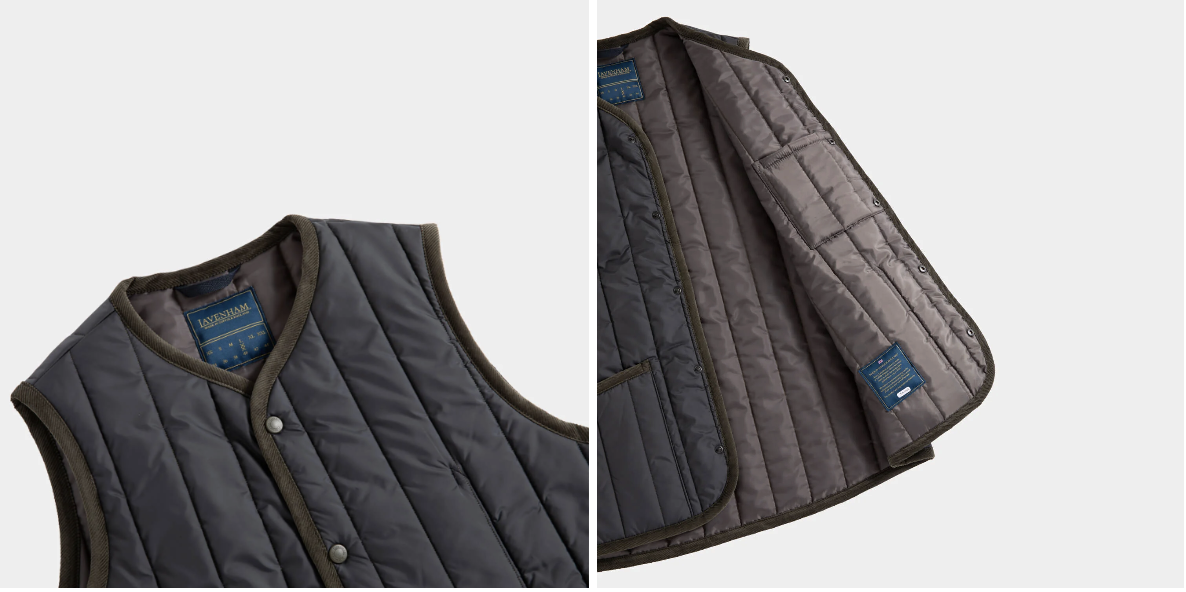 Lavenham 一開始是專門製作馬術相關產品,包含騎士與訓練師的保暖夾克還有馬鞍上的保溫毯子,後來開始採用尼龍材質加上Lavenham 長久以來專精的填充(Wadding)和縫製(Quilting)的技術,製造出耐用、防潑水與保暖的夾克與背心,其他品牌也開始推出類似的產品。
