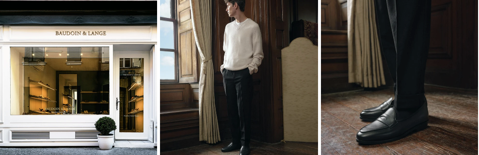 偶然在倫敦街頭發現一家很美麗的鞋店『Baudoin & Lange』,專門販售無鞋帶的樂福鞋(Slippers)與卻爾西短靴(Chelsea),進去一看發現他們於其他英國鞋廠採用厚實硬挺斜面皮革有所不同,B&L 的樂福鞋都是較為糅軟的皮革,搭配輕薄的皮革大底或是天然橡膠大底,營造出輕鬆、優雅與摩登的鞋型。