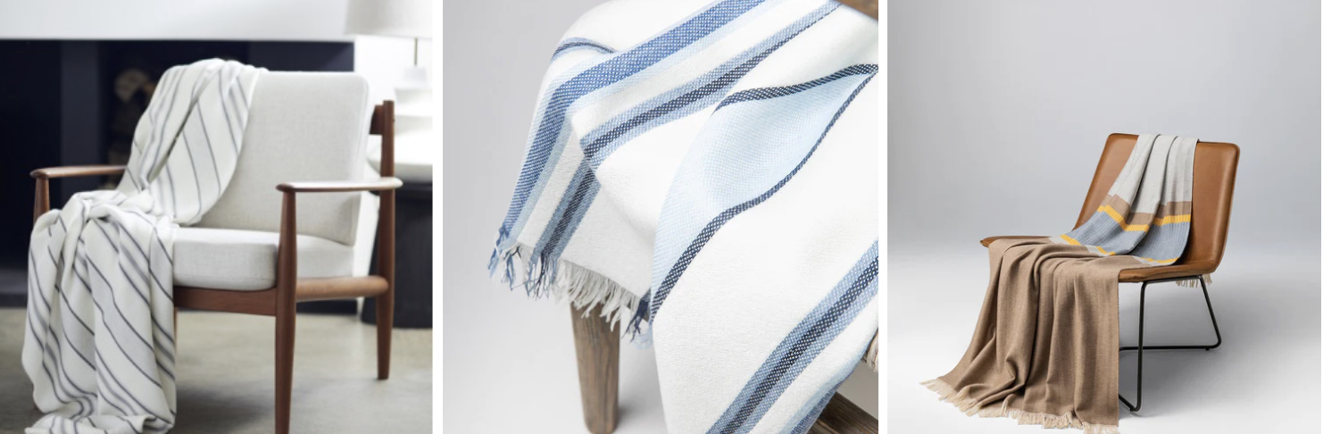 Johnstons of Elgin 手工毛毯經由工匠手工縫製一針一線的方式收邊,採用純美麗諾羊毛、純羊絨或是羊毛與羊絨混紡材質,讓手工毛毯更加柔軟且更加舒適。