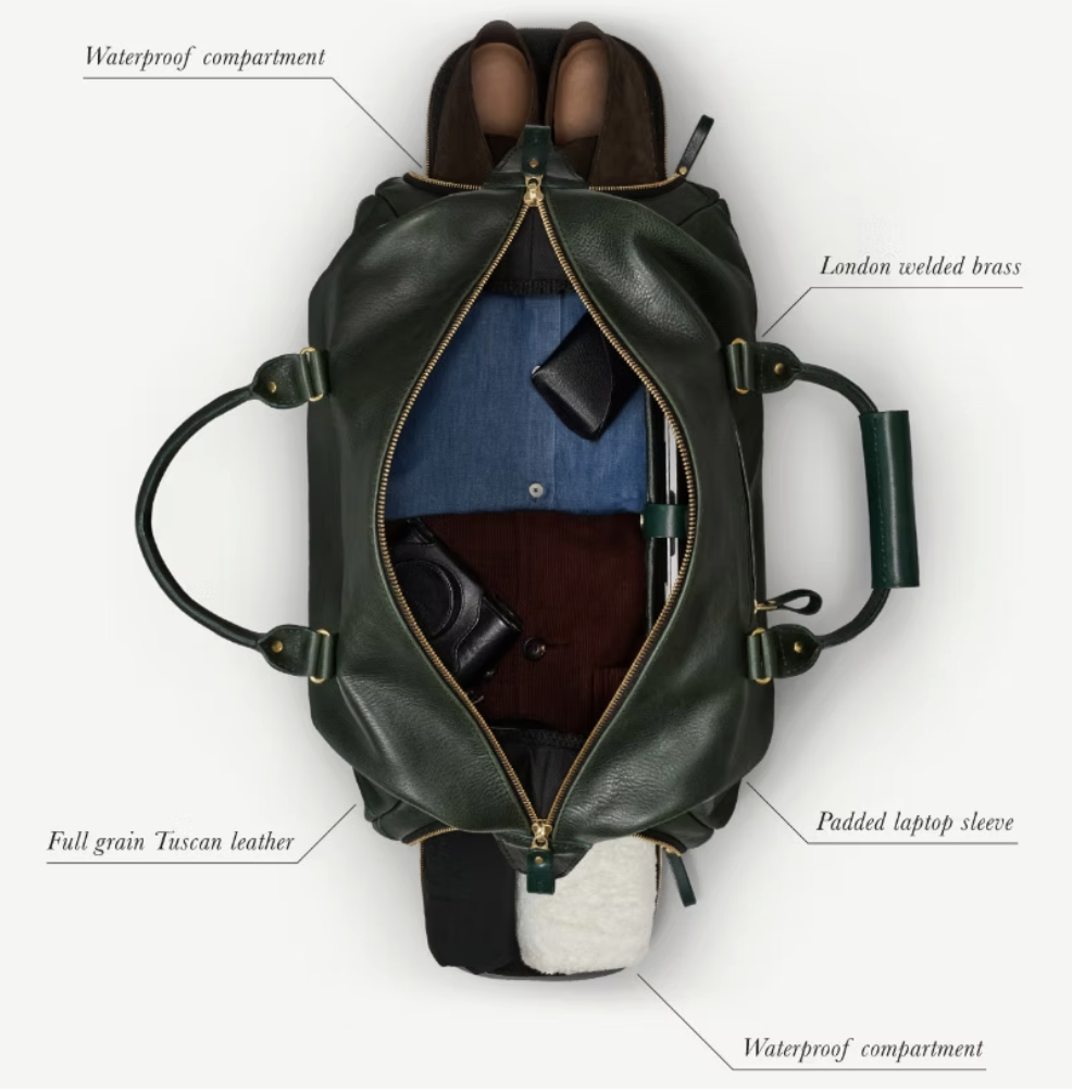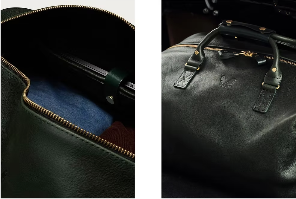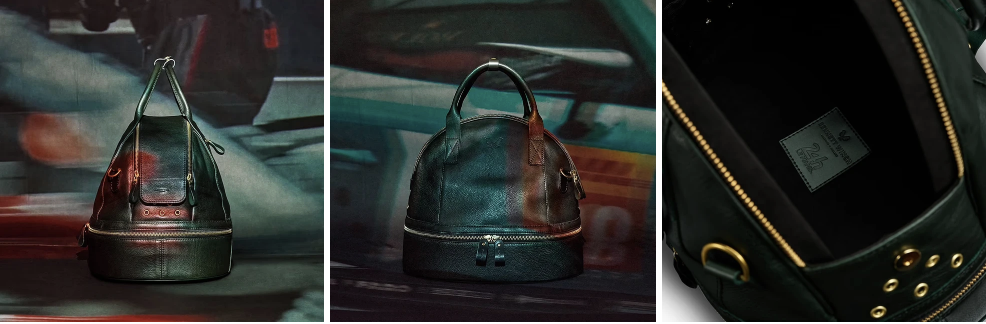 這個全皮革旅行包限量版系列在英國製造,與義大利製革廠專門為此合作開發了皮革,創造一種受到英國賽車綠色啟發的色調,攜帶本身俱有兩個獨立的鞋隔層、內部全襯墊筆記型電腦存儲空間、內部拉鍊安全口袋以及完全支撐和鑲嵌的底座。路很長——準確地說是24小時。